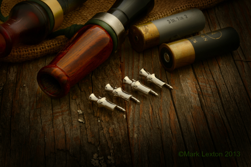 Hand Carved Duck Call Dress Studs available in Sterling Silver and Gold