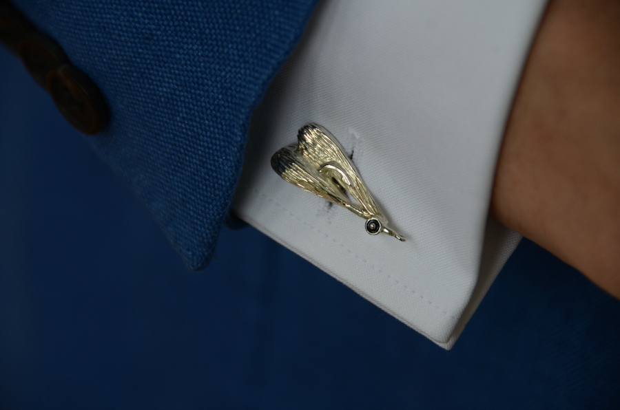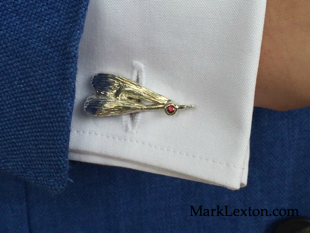 Fly Cufflinks for the angler. Hand carved and available in sterling silver with enamel or stone eyes.