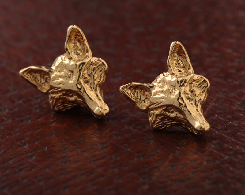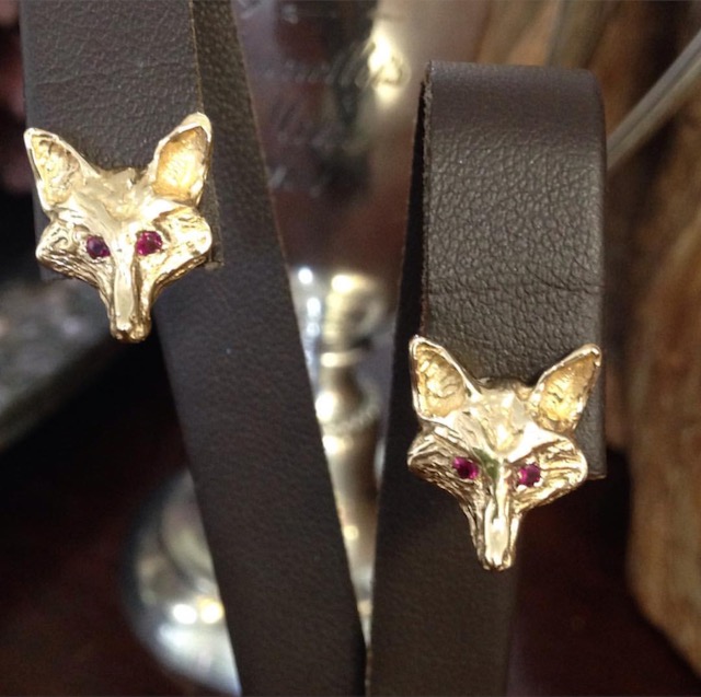 Fox mask earrings. Classics, these are “in” this year. Choose from sterling or gold. With or without stone eyes.